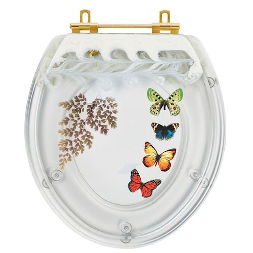 Assento Sanitário Poliéster Convencional Decorado Borboletas Com Ferragem Dourada - Branco