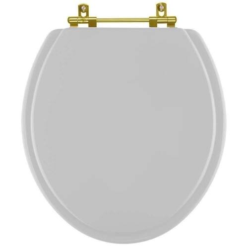 Assento Sanitario Poliéster Convencional Universal Oval Cinza Claro Com Ferragem Dourada O Assento Sanitario Poliéster Convencional Universal Oval Cinza Claro com Ferragem Dourada é a opção ideal para quem busca combinar funcionalidade com elegância em seu banheiro. Elegância e Diferenciação: Um design refinado e diferenciais de alto padrão. Com acabamento de excelência e ferragens em alumínio anodizado na cor Dourada, que não oxidam nem enferrujam, ele é a combinação perfeita de beleza e durabilidade.