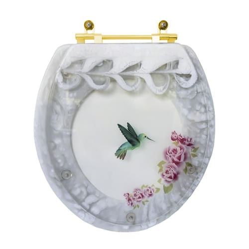 O Assento Sanitário Poliester Decorada Convencional Beija Flor Com Ferragem Dourada é a opção ideal para quem busca combinar funcionalidade com elegância em seu banheiro.