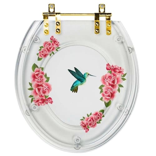 Assento Sanitário Poliester Decorada Convencional Transparente Beija Flor Com Ferragem Dourada O Assento Sanitário Poliester Decorada Convencional Transparente Beija Flor Com Ferragem Dourada é a opção ideal para quem busca combinar funcionalidade com elegância em seu banheiro. Elegância e Diferenciação: Um design refinado e diferenciais de alto padrão. Com acabamento de excelência e ferragens em alumínio anodizado na cor Dourada que não oxidam nem enferrujam, ele é a combinação perfeita de beleza e durabilidade.