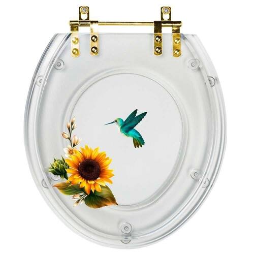 Assento Sanitário Poliester Decorada Convencional Transparente Girassol Beija Flor Com Ferragem Dourada O Assento Sanitário Poliester Decorada Convencional Transparente Girassol Beija Flor Com Ferragem Dourada é a opção ideal para quem busca combinar funcionalidade com elegância em seu banheiro. Elegância e Diferenciação: Um design refinado e diferenciais de alto padrão. Com acabamento de excelência e ferragens em alumínio anodizado na cor Dourada que não oxidam nem enferrujam, ele é a combinação perfeita de beleza e durabilidade.