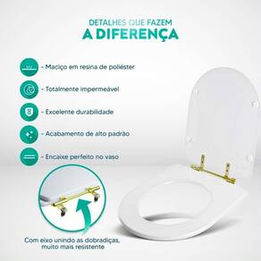 Durabilidade e Resistência: Fabricado em resina maciça de poliéster, este assento sanitário é altamente resistente e totalmente impermeável.