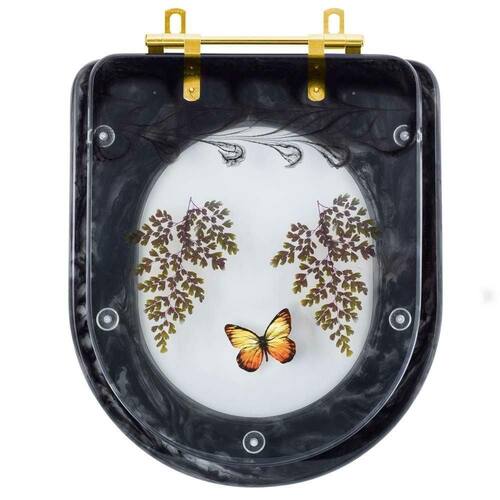 Assento Sanitario Poliester Decorado Borboleta Amarela Carrara Preto Com Ferragem Dourada O Assento Sanitario Poliester Decorado Borboleta Amarela Carrara Preto com Ferragem Dourada é a opção ideal para quem busca combinar funcionalidade com elegância em seu banheiro. Elegância e Diferenciação: Um design refinado e diferenciais de alto padrão. Com acabamento de excelência e ferragens em alumínio anodizado que não oxidam nem enferrujam, ele é a combinação perfeita de beleza e durabilidade.