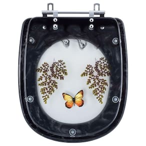 Assento Sanitario Poliester Decorado Borboleta Paris Preto para vaso Ideal Standard