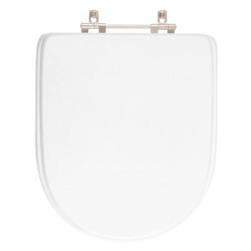 O encaixe do assento sanitário no vaso é feito por uma ferragem metálica que não oxida e não enferruja.