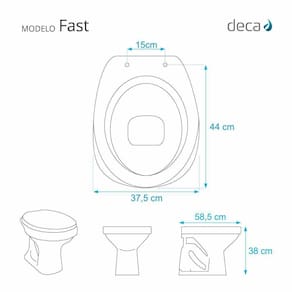 Tampa de Vaso Sanitário Poliéster Fast Branco para bacia Deca traz beleza e requinte ao seu banheiro. Esta Tampa de Vaso é fabricada 100% em Resina Virgem de Poliéster. É impermeável, ultra resistente, tem acabamento brilhante e ferragem metálica que não enferruja. Com materiais de primeira linha, destaca-se por sua qualidade impecável. É compatível para uso em vaso sanitário com ou sem caixa acoplada. Instalação rápida e fácil, acompanha parafusos de fixação e basta apenas uma chave de fenda para instalar no vaso. Entrega garantida e rastreada com embalagem dupla reforçada. Cor: Branco. Distância entre meio dos furos da louça: 15cm. Acabamento: brilhante. Dicas: Itens inclusos: 01 assento sanitário em resina maciça de poliéster Limpeza: fácil limpeza e manutenção. Recomenda-se a limpeza com água e sabão neutro e não utilizar produtos abrasivos ou químicos. Instalação: Sem desmontar o produto, posicione os dois parafusos com borrachas pretas sobre os buracos da bacia sanitária e os encaixe dentro deles. Aperte com a chave de fenda no sentido horário até ficar firme. Importante: este anúncio inclui somente o produto conforme descrição acima. Todos os elementos decorativos das fotos não estão inclusos. Observação: O código 6LPF / 1.6gpf gravado na louça sanitária corresponde ao fluxo de água de uma descarga e não indica o modelo da mesma.