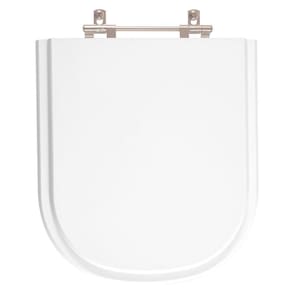 O encaixe do assento sanitário no vaso é feito por uma ferragem metálica que não oxida e não enferruja.