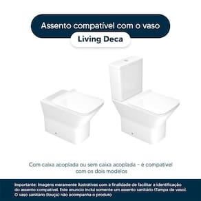 Compatível com o vaso sanitário Deca modelo Living com ou sem caixa acoplada.