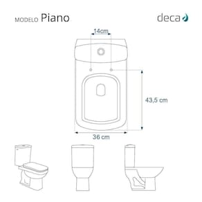 com o vaso sanitário Deca modelo Piano com ou sem caixa acoplada.
