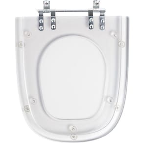 O encaixe do assento sanitário no vaso é feito por uma ferragem metálica que não oxida e não enferruja.