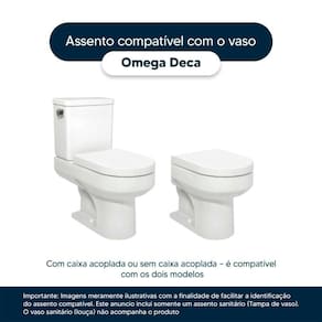 Compatível com o vaso sanitário Deca modelo Omega com ou sem caixa acoplada.