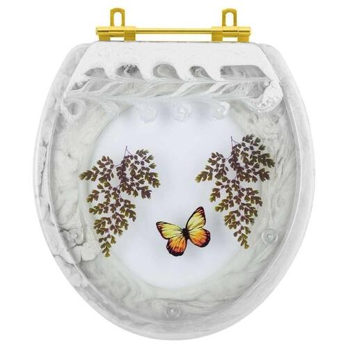Assento Sanitário Poliester Oval Branco Decorado Borboleta Amarela Com Ferragem Dourada O Assento Sanitário Poliester Oval Branco Decorado Borboleta Amarela Com Ferragem Dourada é a opção ideal para quem busca combinar funcionalidade com elegância em seu banheiro. Elegância e Diferenciação: Um design refinado e diferenciais de alto padrão. Com acabamento de excelência e ferragens em alumínio anodizado na cor Dourada que não oxidam nem enferrujam, ele é a combinação perfeita de beleza e durabilidade.