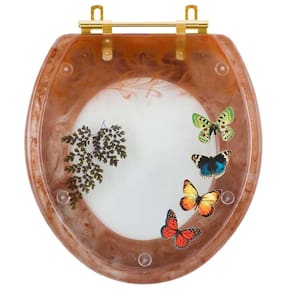 Assento Sanitário Poliéster Oval Convencional Caramelo com 4 Borboletas para todas as marcas Com Ferragem Dourada