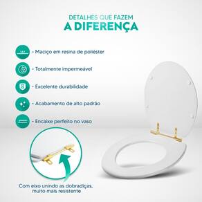Assento Sanitário Poliéster Oval Convencional com 4 Borboletas para todas as marcas Com Ferragem Dourada - Branco