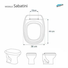 Assento sanitário para Louça Sabatini (Icasa) fabricado com 100% de resina de poliéster virgem, sem adição de talco industrial, fibra ou manta de madeira. Devido a sua composição maciça em resina de poliéster este produto é totalmente impermeável, resistente a água, fácil higienização e alta durabilidade. Superfície polida com alto brilho e padrão de acabamento Premium. Montado com rebites ocultos e ferragem em aço inoxidável, resistente às condições mais severas encontradas em um ambiente sanitário e com 8 batedores em PVC que proporciona maior durabilidade e conforto. Acabamento: Alto Brilho Acompanha Manual de Instalação: Sim Altura: 4 cm Ambiente Principal: Banheiro Comprimento: 53,5 cm Cor: Cinza Escuro Cor do Produto: Cinza Escuro Distância dos Furos: 15 cm Espessura: 10 mm Fechamento: Comum Ferragens: Aço Indicado para bacia: Sabatini Informações Complementares: Não subir ou sentar na tampa do assento Instruções de instalação: Verificar manual de instalação Itens Inclusos: Componentes de fixação Largura: 39,5 cm Linha ou Coleção: Aço Inox Linha recomendada para uso: Sabatini Manual de Montagem e Instalação: https://product-hub-prd.madeiramadeira.com.br/899440/documents/75e725a2-a30c-4a09-aaeb-8f4c24ba99bdstalacaolimpezaassentoliso.pdf Marca recomendada para uso: Icasa Material Principal: Poliéster Origem do Produto: Nacional Peso: 3 kg Possui rebaixamento frontal: Não Proteção antibacteriana: Não Quantidade De Calços: 8 Recomendações de Uso, Manutenção e Limpeza: Usar somente água e sabão neutro com um pano macio, não use produtos abrasivos, álcool, espoja de aço, detergentes fortes ou produtos químicos agressivos, Para manter o brilho use cera polidora para automóveis ou lustra móveis. Resistência a Risco: Sim Superfície lisa: Sim Suporta Até (kg): 280 kg Tipo de Assento: Específico Tipo de Fixação: Parafusado Marca: Sedile Assentos