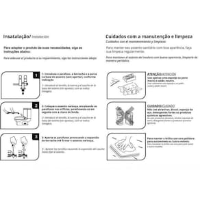 Assento sanitário para Louça Tivoli (Ideal Standard) fabricado com 100% de resina de poliéster virgem, sem adição de talco industrial, fibra ou manta de madeira. Devido a sua composição maciça em resina de poliéster este produto é totalmente impermeável, resistente a água, fácil higienização e alta durabilidade. Superfície polida com alto brilho e padrão de acabamento Premium. Montado com rebites ocultos e ferragem em aço inoxidável, resistente às condições mais severas encontradas em um ambiente sanitário e com 8 batedores em PVC que proporciona maior durabilidade e conforto. Acabamento: Alto Brilho Acompanha Manual de Instalação: Sim Altura: 4 cm Ambiente Principal: Banheiro Comprimento: 53,5 cm Cor: Branco Cor do Produto: Branco Distância dos Furos: 17 cm Espessura: 10 mm Fechamento: Comum Ferragens: Aço Indicado para bacia: Tivoli Informações Complementares: Não subir ou sentar na tampa do assento Instruções de instalação: Verificar manual de instalação Itens Inclusos: Componentes de fixação Largura: 39,5 cm Linha ou Coleção: Aço Inox Linha recomendada para uso: Tivoli Manual de Montagem e Instalação: https://product-hub-prd.madeiramadeira.com.br/899498/documents/ea165d98-e9e3-471f-b514-e5b1cfe09395stalacaolimpezaassentoliso.pdf Marca recomendada para uso: Ideal Standard Material Principal: Poliéster Origem do Produto: Nacional Peso: 3 kg Possui rebaixamento frontal: Não Proteção antibacteriana: Não Quantidade De Calços: 8 Recomendações de Uso, Manutenção e Limpeza: Usar somente água e sabão neutro com um pano macio, não use produtos abrasivos, álcool, espoja de aço, detergentes fortes ou produtos químicos agressivos, Para manter o brilho use cera polidora para automóveis ou lustra móveis. Resistência a Risco: Sim Superfície lisa: Sim Suporta Até (kg): 280 kg Tipo de Assento: Específico Tipo de Fixação: Parafusado Marca: Sedile Assentos