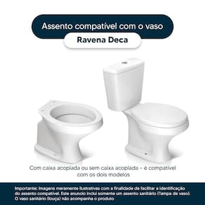 Compatível com o vaso sanitário Deca modelo Ravena com ou sem caixa acoplada.