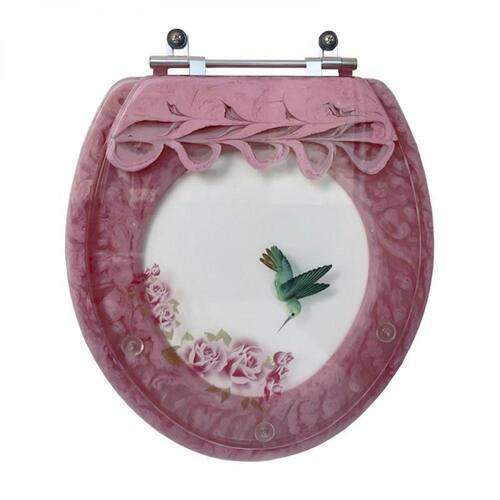 Assento Sanitário Poliéster Convencional / Oval Cristal e Marmorizado Rosa Decorado com Beija Flor e Flores é a escolha perfeita para seu banheiro. O Assento Sanitário Poliéster é considerado a melhor linha de assentos sanitários do mercado pelo seu acabamento impecável e excelente durabilidade.