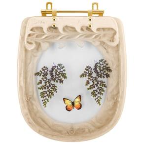 Assento Sanitário Poliéster Sabatini Bege Decorado Borboleta Amarela Com Ferragem Dourada