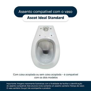 Detalhes e Cuidados Especiais: * Cor: Visone * Compatibilidade: Modelo Ascot da marca Ideal Standard * Conteúdo da Embalagem: Assento sanitário, parafusos de fixação e instruções de instalação. * Fabricante do Assento Sanitário: Pontto Lavabo.