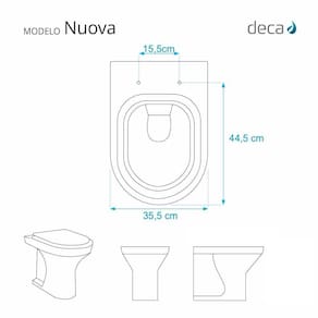 Compatível para uso em vaso sanitário Deca modelo Nuova com ou sem caixa acoplada.