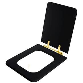 Assento Sanitario Poliester Square Preto para vaso Incepa com Ferragem Dourada