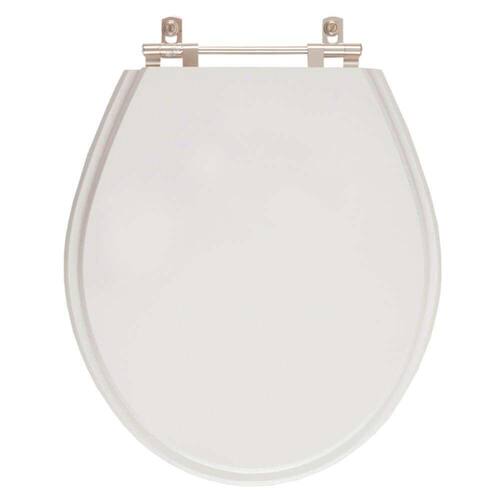 O encaixe do assento sanitário no vaso é feito por uma ferragem metálica que não oxida e não enferruja.