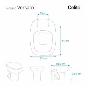 Compatível para uso em vaso sanitário Celite modelo Versato com ou sem caixa acoplada.