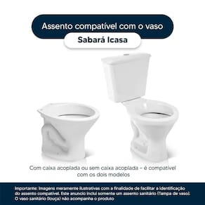 Este assento sanitário é compatível para uso em vaso sanitário Icasa modelo Sabará com ou sem caixa acoplada.