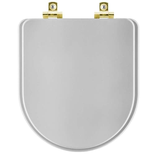 Assento Sanitário Soft Close Carrara Cinza Real Para Vaso Deca Com Ferragem Dourada Dê um toque de elegância e modernidade ao seu banheiro com o Assento Sanitário Soft Close Carrara Cinza Real para vaso Deca com Ferragem Dourada. Com seu sistema exclusivo de fechamento suave, seguindo as últimas tendências em decoração, proporciona uma experiência moderna e funcional. Elegância e Diferenciação: Um design refinado e diferenciais de alto padrão. Com acabamento de excelência e ferragens em alumínio anodizado na cor Dourada que não oxidam nem enferrujam, ele é a combinação perfeita de beleza e durabilidade.