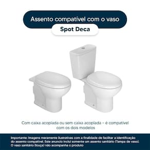 Instalação Simples e Rápida: Com todos os parafusos e componentes necessários inclusos, a instalação é rápida e descomplicada. Seu assento estará pronto para uso em questão de minutos. Desenvolvido especificamente para o modelo Spot da marca Deca, com ou sem caixa acoplada, proporciona um encaixe perfeito, oferecendo estabilidade e conforto durante o uso.
