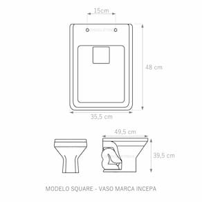 Assento Sanitário (tampa de vaso) fabricado em madeira MDF com pintura laqueada, com proteção raios UV, que garante excelente acabamento e durabilidade. Compatível com vasos (bacias/louças) sanitários com ou sem caixa acoplada. Tem calços de PVC instalados na tampa e no assento para proporcionar estabilidade ao uso, pois distribui o peso uniformemente sobre a louça sanitária. Montagem simples e fácil. Possui ferragem em alumínio anodizado que não enferruja/oxida e oferece muita resistência. O assento é acompanhado por parafusos para instalação. Embalagem dupla reforçada garante o recebimento do produto totalmente protegido. Especificações: - Dimensões da caixa: largura: 51,50cm. Altura: 4,00cm comprimento: 38,00cm - Peso do produto: 1,98kg - Acabamento: brilhante - Uso: este assento é adequado para uso na louça Incepa modelo Square - Garantia: 3 meses - Itens inclusos: Tampa e assento com calços de PVC, ferragem inoxidável, embalagem duplamente reforçada. Contém todos os parafusos e encaixes para instalação, sendo necessária somente uma chave de fenda para instalar o produto na louça sanitária. Instalação:posicione o produto, devidamente centralizado, em cima do vaso sanitário. Sem desmontar a ferragem, insira as buchas de borracha dentro dos furos da bacia sanitária. Utilizando uma chave de fenda, aperte o parafuso no sentido horário até que o assento esteja firme no vaso. Manutenção: recomendamos a limpeza periódica com pano levemente umedecido com sabão neutro. Não usar esponjas abrasivas ou palha de aço nem qualquer tipo de produto químico.