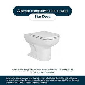Assento Sanitário Star Branco Para Vaso Deca O Assento Sanitário Star Branco para vaso Deca é a opção ideal para quem busca combinar funcionalidade com elegância em seu banheiro. Elegância e Diferenciação: Um design refinado e diferenciais de alto padrão. Com acabamento de excelência e ferragens em alumínio anodizado que não oxidam nem enferrujam, ele é a combinação perfeita de beleza e durabilidade.