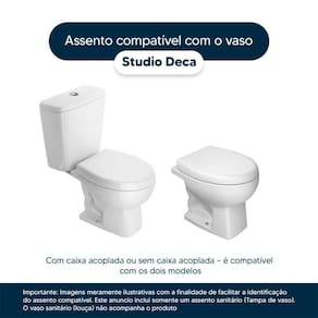 Este assento sanitário é compatível para uso em vaso sanitário Deca modelo Studio com ou sem caixa acoplada.