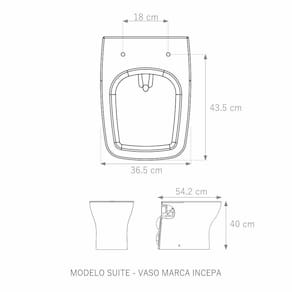 Assento Sanitário tampa de vaso fabricado em madeira MDF com pintura laqueada, com proteção raios UV, que garante excelente acabamento e durabilidade. Compatível com vasos bacias/louças sanitários com ou sem caixa acoplada. Tem calços de PVC instalados na tampa e no assento para proporcionar estabilidade ao uso, pois distribui o peso uniformemente sobre a louça sanitária. Montagem simples e fácil. Possui ferragem em alumínio anodizado que não enferruja/oxida e oferece muita resistência. O assento é acompanhado por parafusos para instalação. Embalagem dupla reforçada garante o recebimento do produto totalmente protegido. Especificações: - Dimensões da caixa: largura: 49,50cm. Altura: 4,00cm comprimento: 39,50cm - Peso do produto: 1,98kg - Acabamento: brilhante - Uso: este assento é adequado para uso na louça Incepa modelo Suite - Garantia: 3 meses - Itens inclusos: Tampa e assento em MDF com calços de PVC, ferragem inoxidável, embalagem duplamente reforçada. Contém todos os parafusos e encaixes para instalação, sendo necessária somente uma chave de fenda para instalar o produto na louça sanitária. Instalação: posicione o produto, devidamente centralizado, em cima do vaso sanitário. Sem desmontar a ferragem, insira as buchas de borracha dentro dos furos da bacia sanitária. Encaixe os parafusos e posicione as porcas. Utilizando uma chave de fenda, aperte o parafuso no sentido horário até que o assento esteja firme e fixo no vaso. Manutenção: recomendamos a limpeza periódica com pano levemente umedecido com sabão neutro. Não usar esponjas abrasivas ou palha de aço nem qualquer tipo de produto químico.
