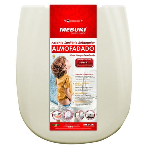 Atenção: meça sua louça sanitária conforme instruções na imagem do produto para conferir a compatibilidade do assento.A qualidade mebuki agora na internetbr / br / O assento sanitário almofadado retangular mebuki é resistente,br / Confortável e de fácil instalação, além de ser compatível com diversas louças retangulares do mercado, de várias marcasconheça os detalhes que fazem a diferença nobr / Nosso produto:a tampa e o assento não caem, mesmo com louças que possuembr / br / Parafusos de fixação reforçados e porcas cônicas, quebr / Garantem um melhor ajuste para seu vaso. br / br / Tampa envolvente que cobre todo o assentobr / br / br / Assento almofadado com poliuretano de qualidade, que evitabr / br / Respiro traseiro, posicionado adequadamente para evitar maubr / Cheiro e acúmulo de germes no interior do assento.Distância entre os parafusos: 15cm porém nossos parafusos possuem um ajuste lateral que se adaptam à pequenas diferenças de tamanho entre os furos da sua louça compatível com as louças sanitárias retangulares abaixo:- sabatini, etna icasa - riviera, life, smart, city celite - nexo, debba, square roca - vogue plus, aspen, fast deca - ibiza incepa - square, loren luna lorenzetti - paris ideal standard - premier mgm - flox fiori - dona beja santa clara distância entre parafusos: mínima: 15 cm / máxima: 16 cmmedidas lxcxa : 36,5x43x3contém: 1 assento sanitário com tampa 1 kit fixação Ean: 10400029