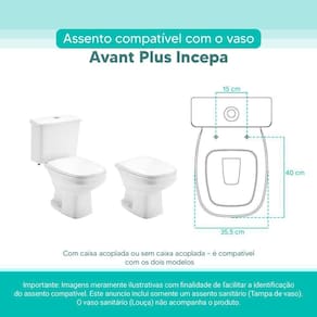 Assento Sanitário Tampa de Vaso Branco MDF Laqueado Avant Plus para bacia Incepa