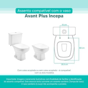 Assento Sanitário Tampa De Vaso Branco Mdf Laqueado Avant Plus Para Bacia Incepa