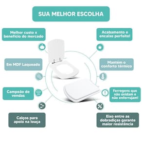 * Acabamento e encaixe perfeito no vaso sanitário.