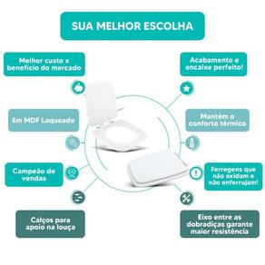 MATERIAL * Fabricado em madeira MDF com Pintura Laqueada na cor Branco * Mantém o conforto térmico do assento sanitário.