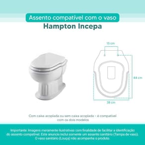 Assento Sanitário Tampa de Vaso Branco MDF Laqueado Hampton para bacia Incepa
