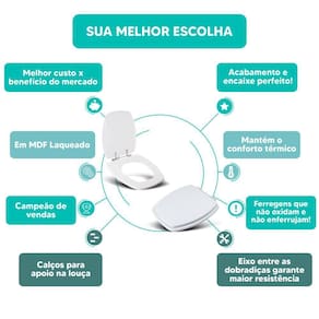 MATERIAL * Fabricado em madeira MDF com Pintura Laqueada na cor Branco * Mantém o conforto térmico do assento sanitário.