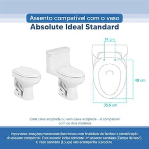 O Assento Sanitário Tampa de Vaso Branco Resina Poliester Absolute para bacia Ideal Standard é o que faltava para deixar seu banheiro ainda mais bonito.
