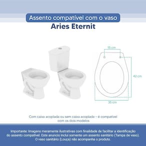 Assento Sanitário Tampa de Vaso Branco Resina Poliester Aries para bacia Eternit