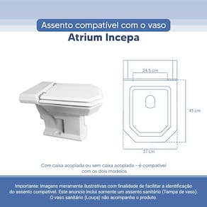 Assento Sanitário Tampa de Vaso Branco Resina Poliester Atrium para bacia Incepa