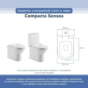 Assento Sanitário Tampa de Vaso Branco Resina Poliester Compacta para bacia Sensea