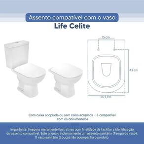 Assento Sanitário Tampa De Vaso Branco Resina Poliester Life Para Bacia Celite