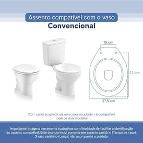 DIFERENCIAL * Possui calços que evitam o direto com a louça e que o assento deslize lateralmente. * Proporcionam maior estabilidade durante o uso. * Acabamento e encaixe perfeito no vaso sanitário. * Possui eixo entre as dobradiças, mantendo o assento sanitário firme na louça. * Sua ferragem metálica é super resistente e não oxida e nem enferruja.