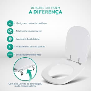 Limpeza: recomenda-se a limpeza do assento sanitário poliéster com água e sabão neutro, não utilizar produtos abrasivos.