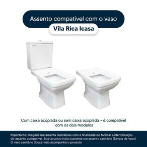 Instalação Simples e Rápida: Com todos os parafusos e componentes necessários inclusos, a instalação é rápida e descomplicada. Seu assento estará pronto para uso em questão de minutos. Desenvolvido especificamente para o modelo Vila Rica da marca Icasa, com ou sem caixa acoplada, proporciona um encaixe perfeito, oferecendo estabilidade e conforto durante o uso.